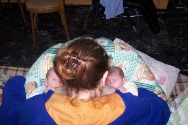 Ho contato uno dei primi giorni 25 poppate, 11 a Diego e 14 a Matteo, ma ne è valsa la pena perché in pochi giorni hanno preso un buon ritmo svegliandosi ogni tre ore. Nei primi mesi li ho allattati quasi sempre contemporaneamente, mettendoli sul cuscino nella posizione “palla da rugby”, io tenevo le gambe incrociate sotto il cuscino per cui le testine erano abbastanza sollevate da non costringermi a piegare la schiena o a sostenerli. La notte prendevo su quello che si era svegliato e lo appoggiavo sul letto, poi prendevo il secondo e facevo lo stesso. Alla fine mi sedevo nel mezzo, prendevo il cuscino e poi li “posizionavo”.
