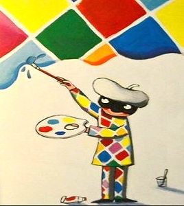 Un miscuglio di prosa e rime, di acrilici e acquerelli, un testo ben fatto e illustrato magnificamente, per spiegare il teatro, i travestimenti, il Carnevale e le storie delle maschere della Commedia dell’Arte: Arlecchino, Pantalone, Pulcinella, Colombina, Rosaura...