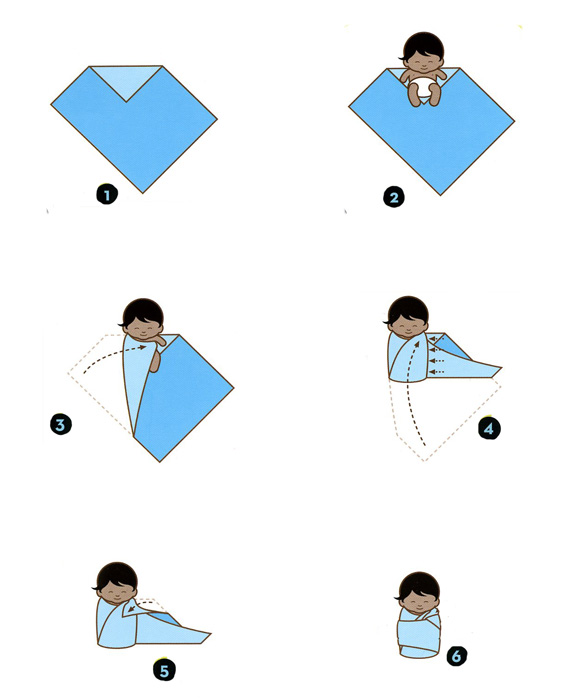 * La tecnica del wrapping consiste nell’ avvolgere il piccolo (in modo non troppo stretto) in un lenzuolino o in una copertina leggera dall’altezza delle spalle fino ai piedini con le manine che restano vicino al viso come mostrato dalla figura sotto.