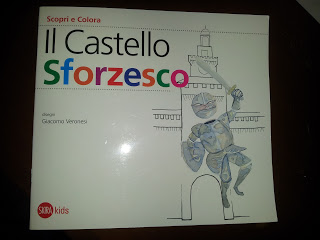 Ultima tappa della nostra gita è la rivendita di libri sempre interna al castello, dove acquistiamo un libro da colorare dal titolo "scopri e colora il Castello Sforzesco" disegni di Giacomo Veronesi.