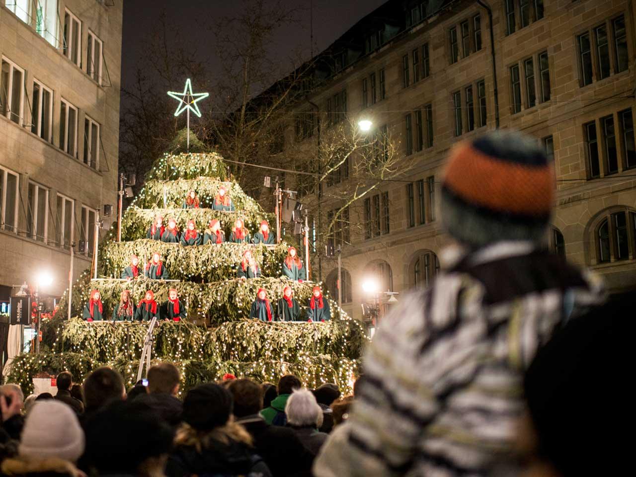 Un immenso albero di Natale che canta dal vivo. Cori di adulti e bambini, dei più diversi generi musicali, che si alternano su questo palco d’eccezione da fine novembre al 23 dicembre, sotto il cielo rischiarato dalle mille luci natalizie e accanto a ...