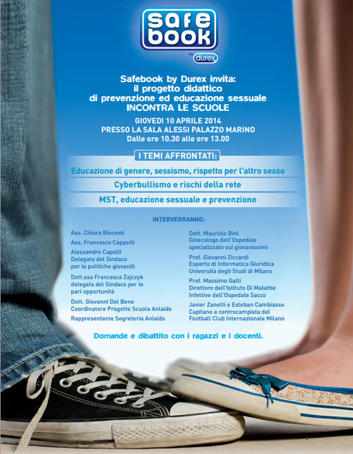 Il web è un mezzo potente, può offrire tante opportunità positive ma presenta anche dei pericoli. Come genitori ne siamo consapevoli? Conosciamo il significato di termini quali cyberbullismo e sexting? Siamo capaci di parlare con serenità di educazione sessuale e affettiva con i nostri ragazzi? La scuola che ruolo positivo può svolgere nella conoscenza e consapevolezza dei ragazzi? Di queste tematiche si occupa SafeBook by Durex, il progetto didattico di prevenzione ed educazione sessuale promosso - per il secondo anno consecutivo - da Durex e patrocinato dal Comune di Milano. ...