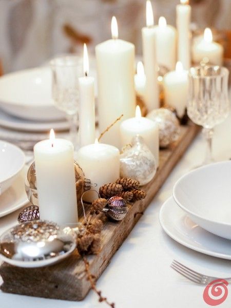 Basta un'asse di legno decorata con candele e pigne, qualche pallina colorata e l'effetto 'shabby chic' è garantito: