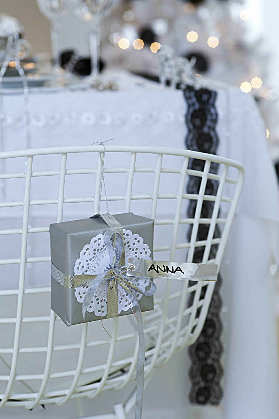Un'altra idea semplice ma originale per i segnaposto natalizi è quella di utilizzare dei piccoli pacchetti, con o senza piiccolo pensierino al'interno, legandoli alla sedia o appoggiandoli al piatto.